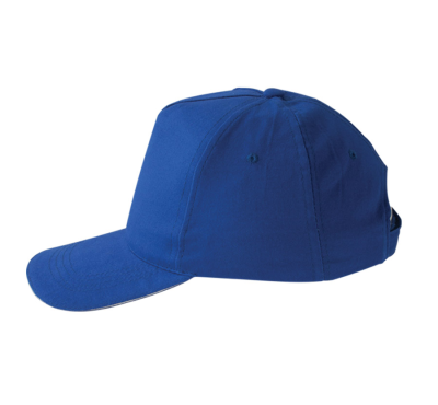 5-panel sandwich cotton cap, 4 embroidered eyelets for ventilation, velcro back closure.