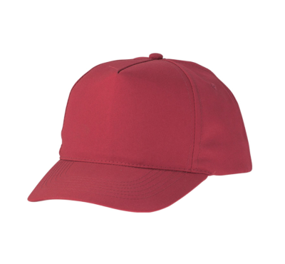 Детска пет панелна шапка с четири бродирани вентилационни отвора, велкро закопчаване.