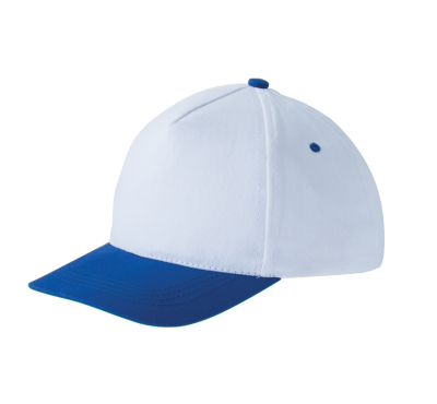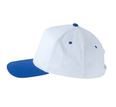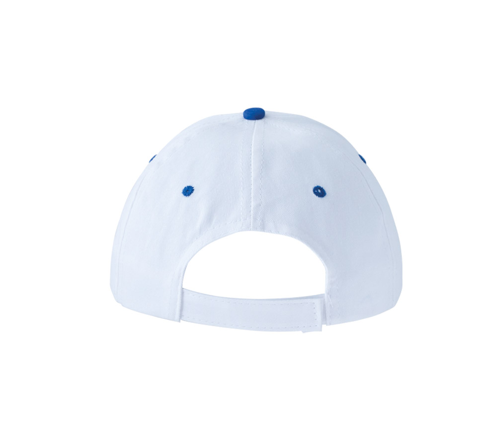 5-panel cotton cap, 4 embroidered eyelets for ventilation, velcro back closure.
