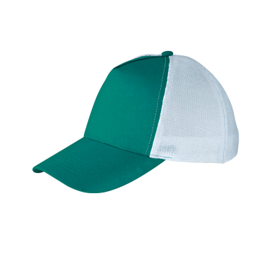 5-panel polyester and mesh cap, 4 embroidered eyelets for ventilation, velcro back closure.