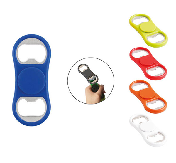 Fidget spinner with bottle opener. The Fidget will comfortably spin for 20-30 seconds.