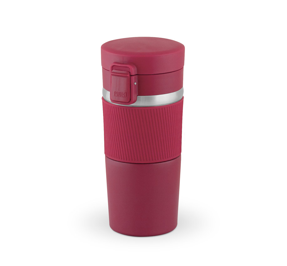 Thermo cup, 400 ml, double-walled, opening button, drinking chute,