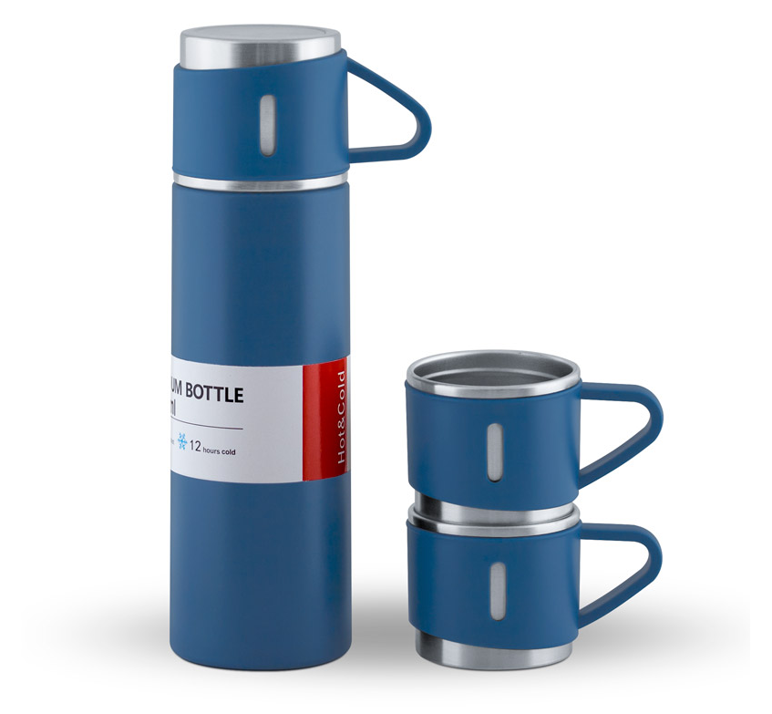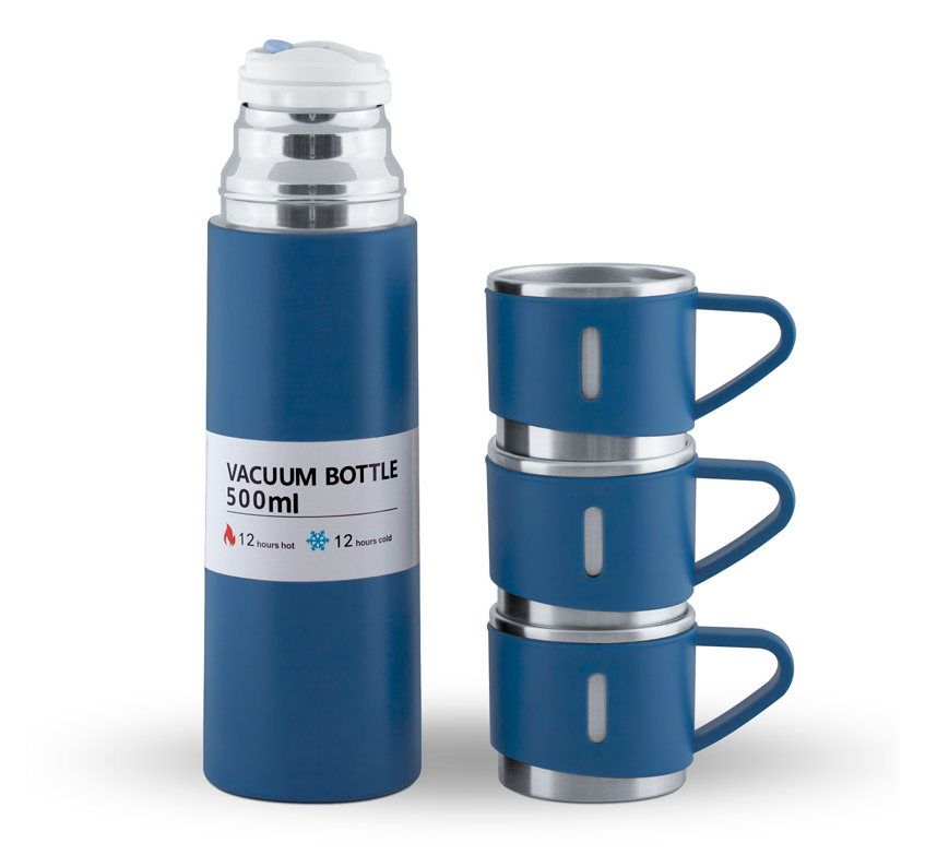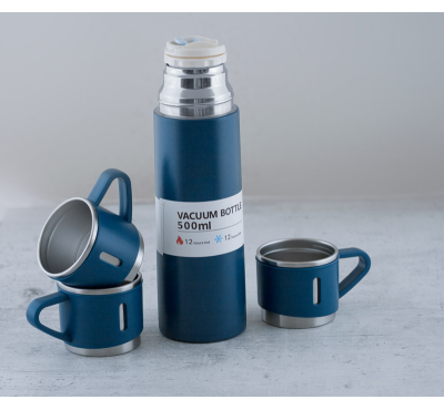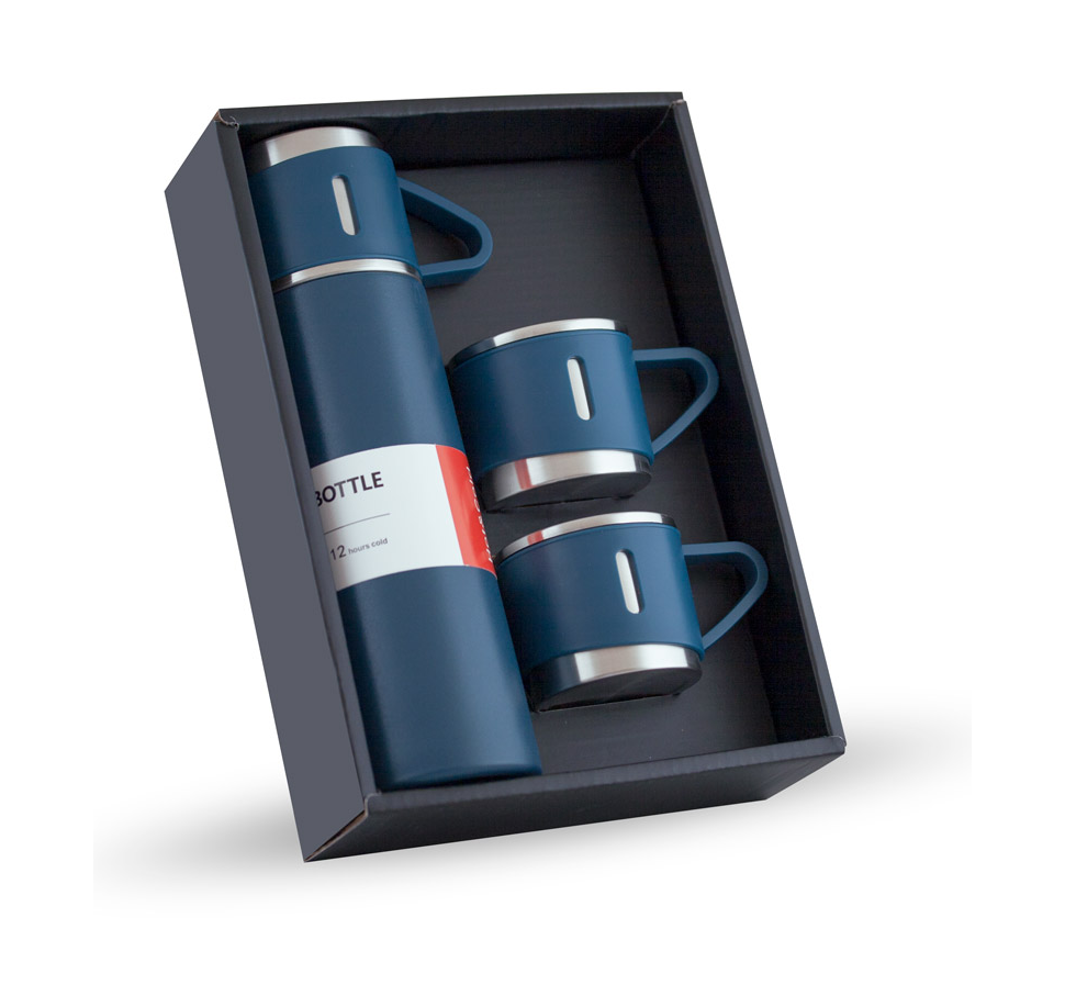 Комплект термос (500 ml) и чаши (150 ml) в кутия и хартиена торба.