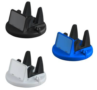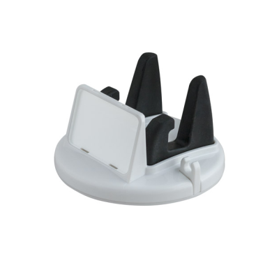 Car phone holder with adhesive mounting base. 360 degree rotation adjustable viewing.