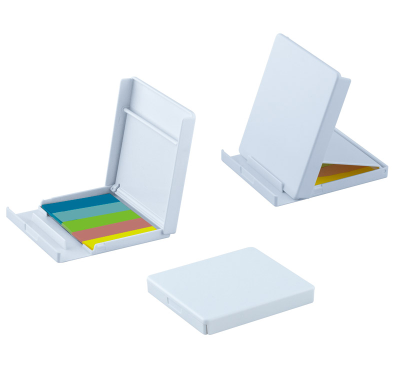 Phone holder with sticky notes.