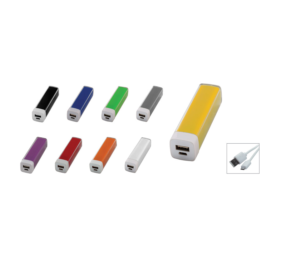 Външна батерия, капацитет 2000 mAh, включен кабел за зареждане.