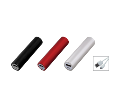 Power Bank with 2000 mAh capacity. Includes a USB to Micro USB charging cable.
