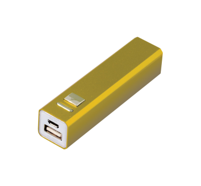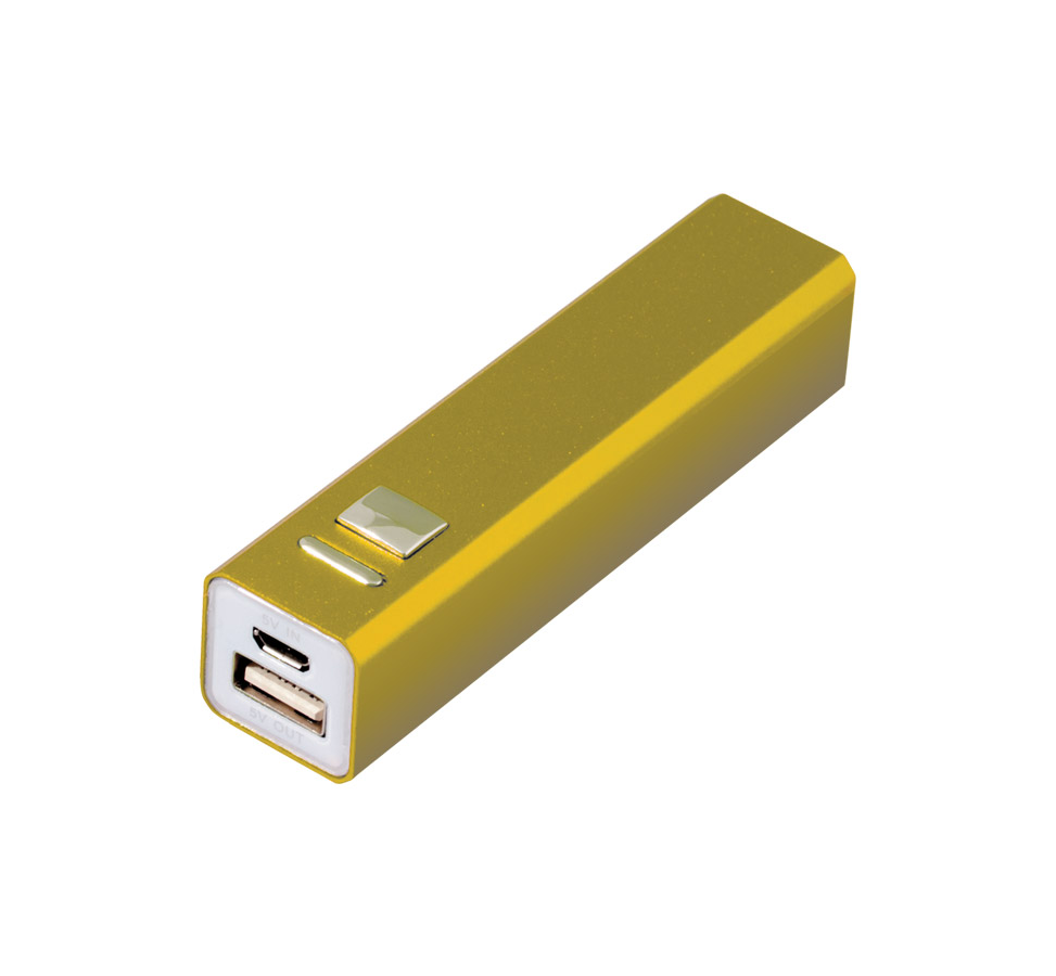 Power Bank with 2600 mAh capacity. Includes a USB to Micro USB charging cable.