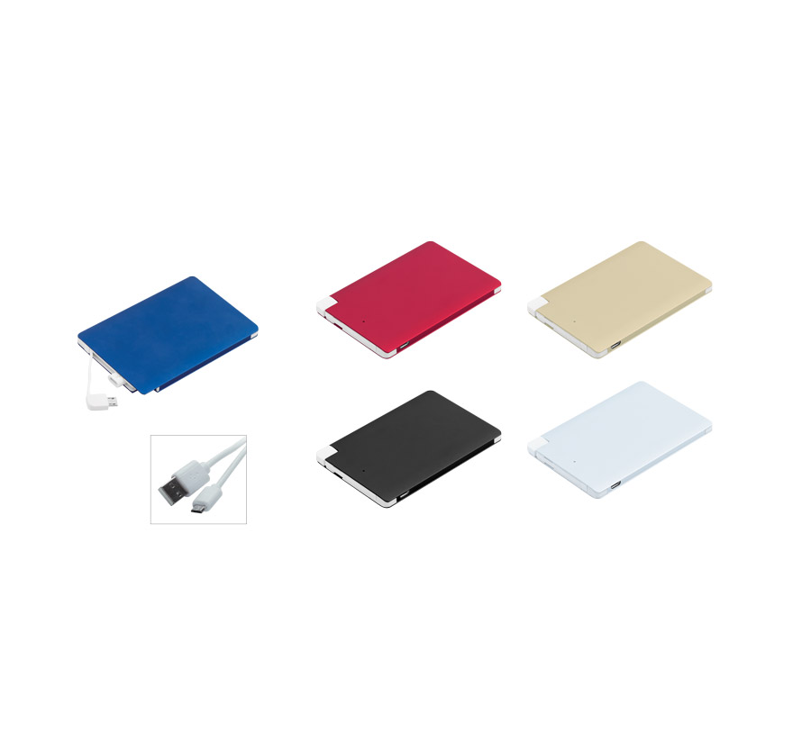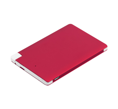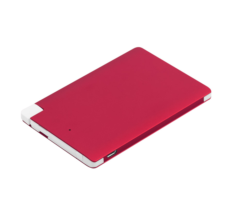 Външна батерия, капацитет 2500 mAh, включен кабел за зареждане и накрайник за iPhone.