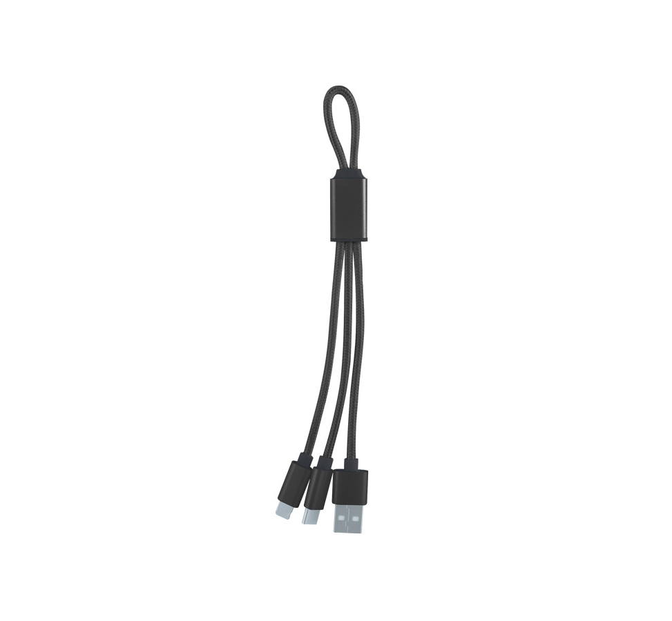 Кабел за зареждане, 3 накрайника, съвместим с iPhone и Android, дължина на кабела 190 mm.