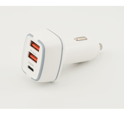 Fast USB car charger. Three ports - Type-C (PD25W), two USB ports (5V/3.5A).