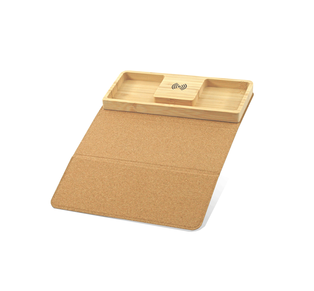 Foldable wireless charging mousepad with pen holder.