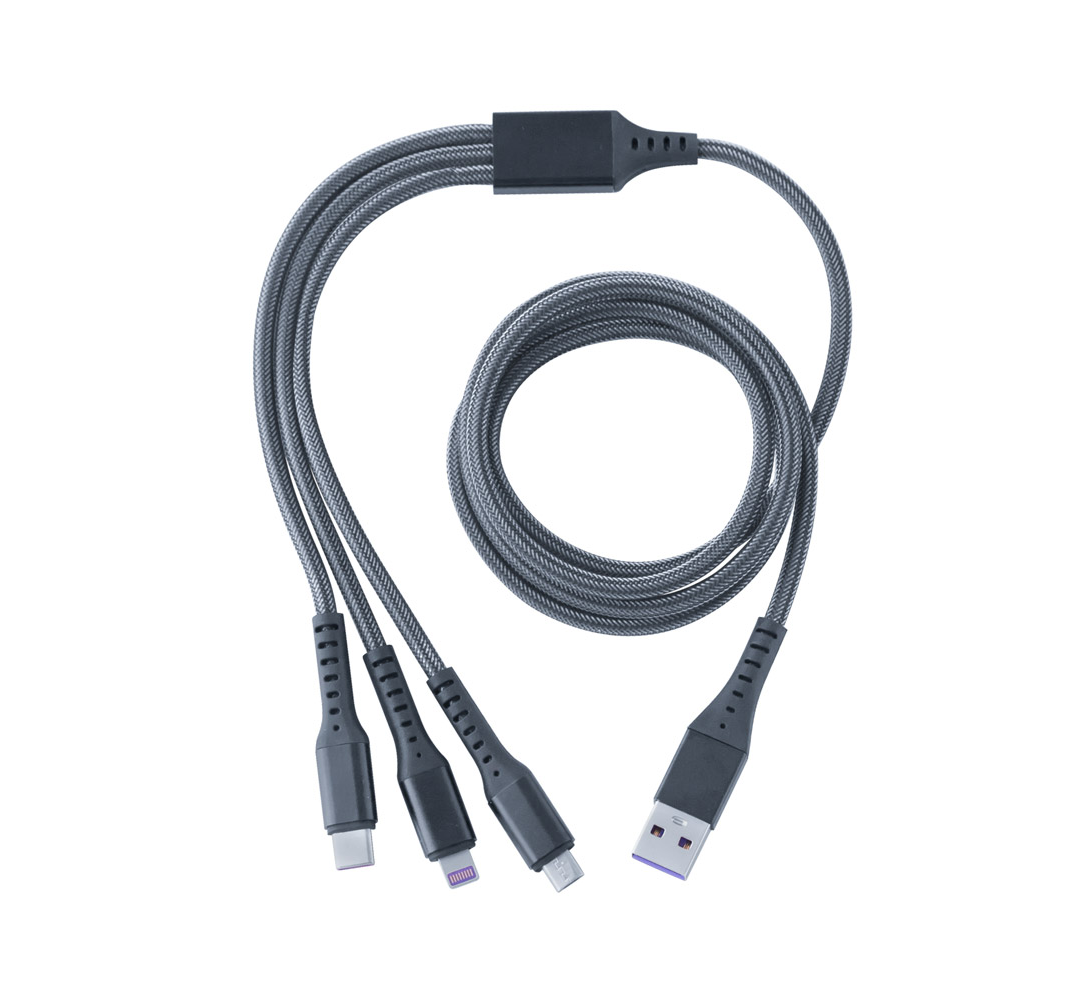 Кабел за зареждане, 3 накрайника, съвместим с iPhone и Android, дължина на кабела 1.20 m.
