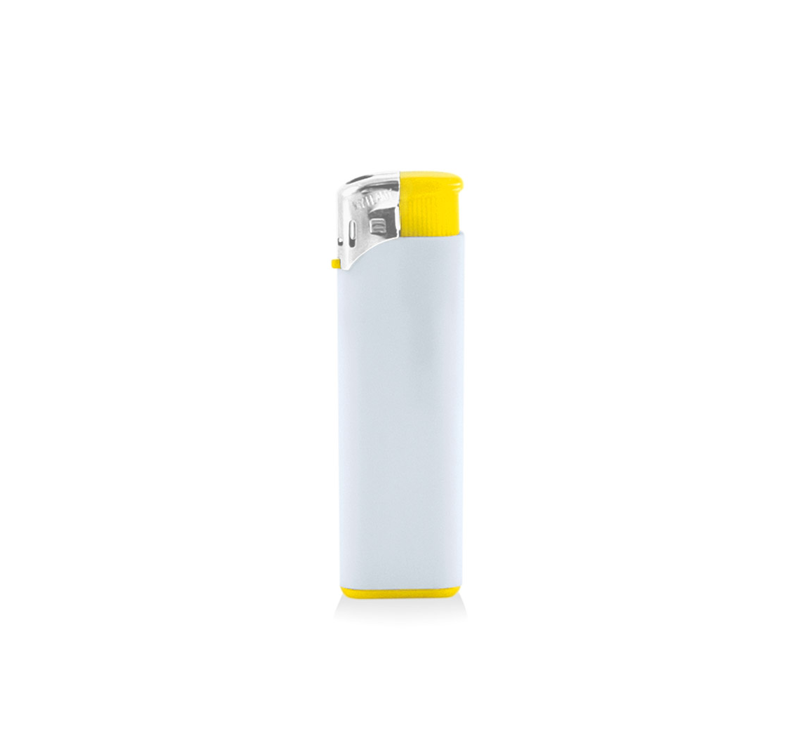 Plastic PIEZO lighter with flame regulation, refillable function, and CR (child-resistance according to EN 13869).