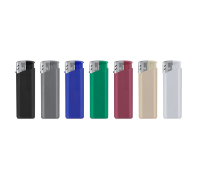 Plastic PIEZO lighter with flame regulation, refillable function, and CR (child-resistance according to EN 13869).